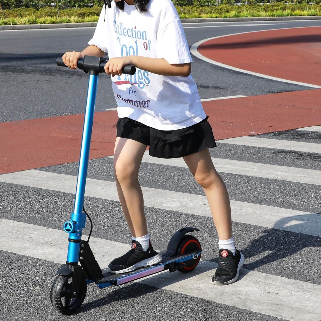 Remarque : pour la sécurité des conducteurs, cette trottinette électrique pour enfants dispose d’une fonction Push Start. L’accélérateur n’activera le moteur qu’une fois que la trottinette atteint une vitesse de 3 km/h (la vitesse réelle peut varier en fonction des conditions d’utilisation). Pour commencer le trajet, placez d’abord un pied sur le pont. Propulsez manuellement vers l’avant en poussant avec l’autre pied. Utilisez votre pouce droit pour pousser doucement l’accélérateur. Lorsque la trottinette commence à rouler, placez les deux pieds sur le pont et commencez votre promenade amusante